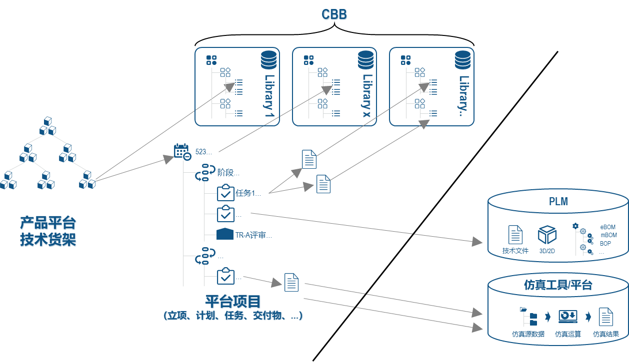 定義和建立基于TBB-CBB的技術(shù)貨架結(jié)構(gòu),實(shí)現(xiàn)線上共享及資產(chǎn)安全管理,支撐企業(yè)從ETO向CTO轉(zhuǎn)型