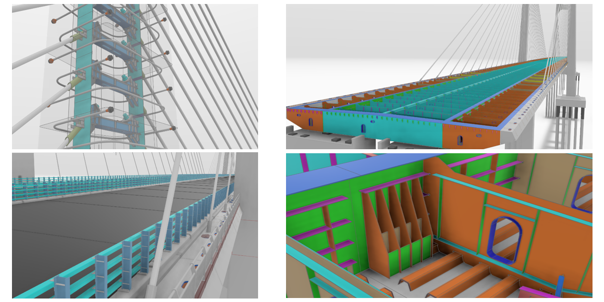 依托3DE軟件平臺,在鋼結(jié)構(gòu)類型的橋梁項目上,提供整體的流程化解決方案,對橋梁專業(yè)內(nèi)的一些技術(shù)指標、關(guān)鍵技術(shù)應用點需求進行了實施驗證。驗證了階段解決方案的高適用性,整個方案流程同時應用在了4種不同類型的鋼結(jié)構(gòu)橋梁中: