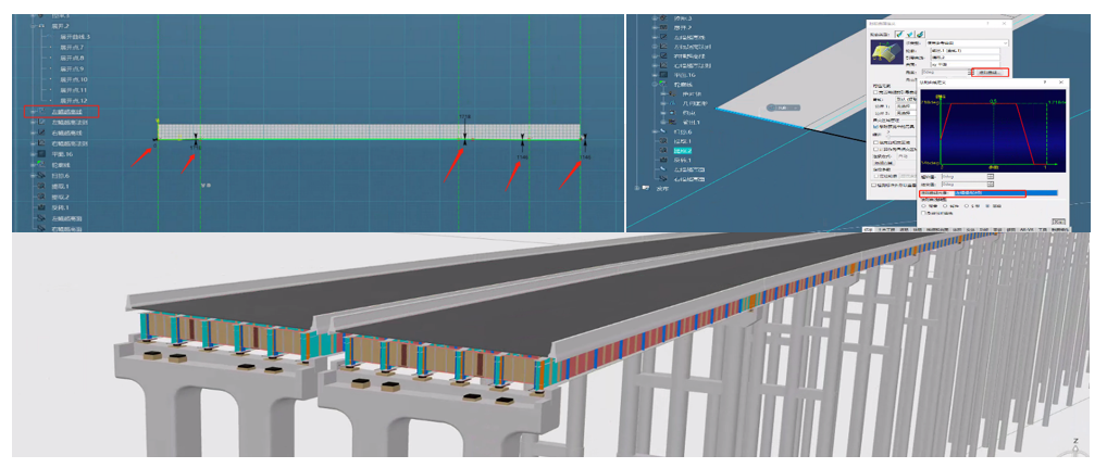 變高組合連續(xù)梁橋,在梁高連續(xù)變化的情況下還存在路面的超高變化,依托3DE強大的知識工程設(shè)計能力,實現(xiàn)復雜描繪數(shù)學邏輯。