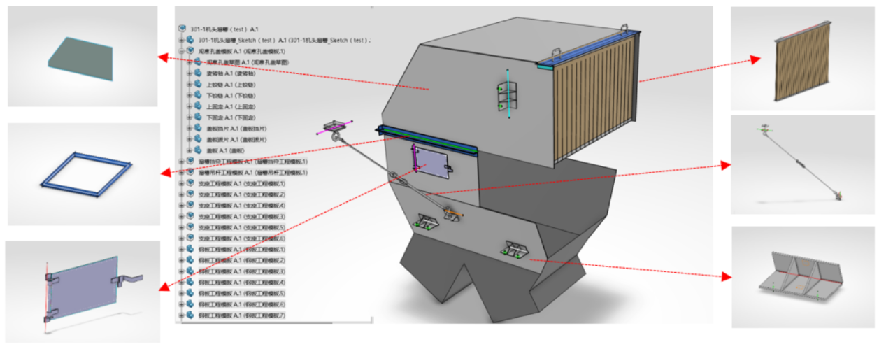 結(jié)合設(shè)計經(jīng)驗和相關(guān)規(guī)范,嵌入業(yè)務(wù)邏輯,完成工藝設(shè)備的模板化,封裝成選煤廠設(shè)計APP,使設(shè)計更加方便、快速建模;非標設(shè)備三維設(shè)計標準化、組件化及流程化,能翻倍的提高設(shè)計效率。