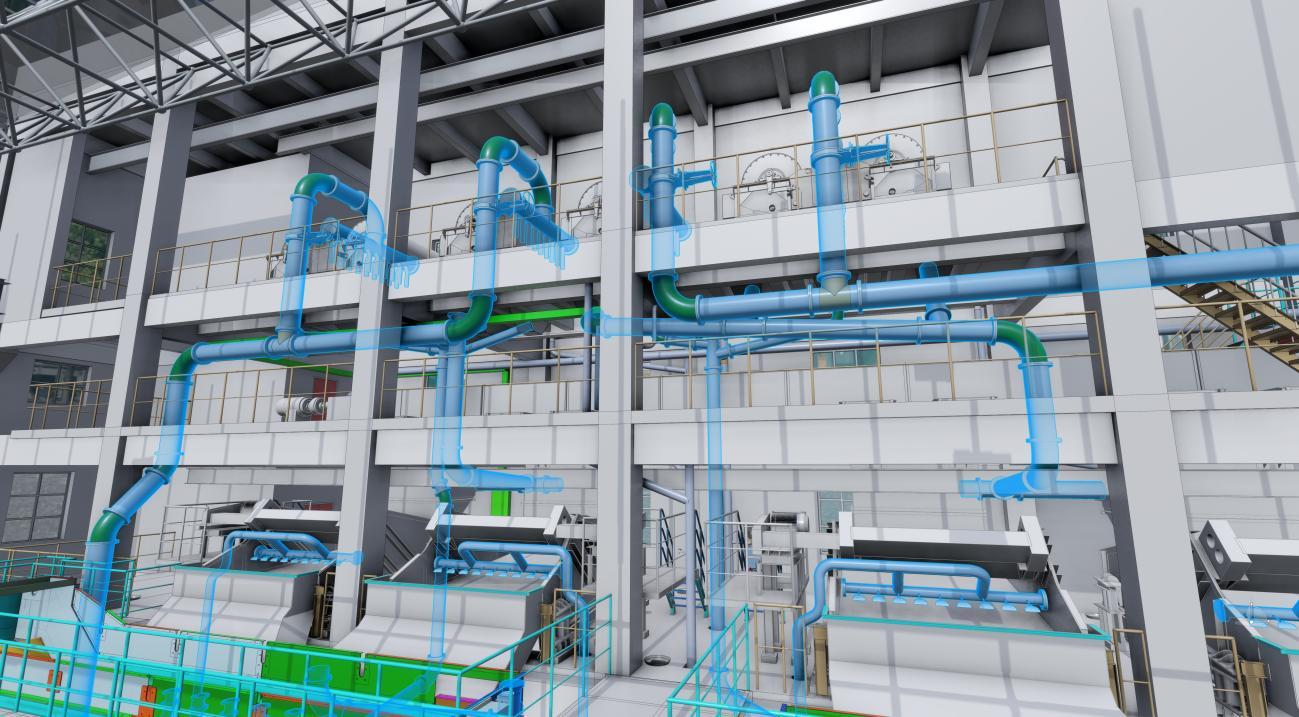 設(shè)備及管路多而復(fù)雜,涉及專業(yè)多,項目工期緊,設(shè)計難度大。傳統(tǒng)二維設(shè)計往往出現(xiàn)錯、漏、碰撞,引發(fā)設(shè)計變更,工程返工,造成工期及利潤損失。為最大程度避免項目設(shè)計出現(xiàn)此類問題,采用BIM設(shè)計手段,為項目準確、按計劃、可控施工及造價控制創(chuàng)造了有利條件。