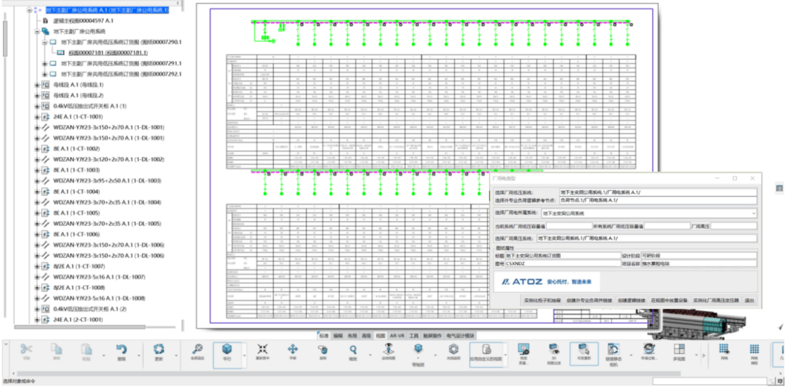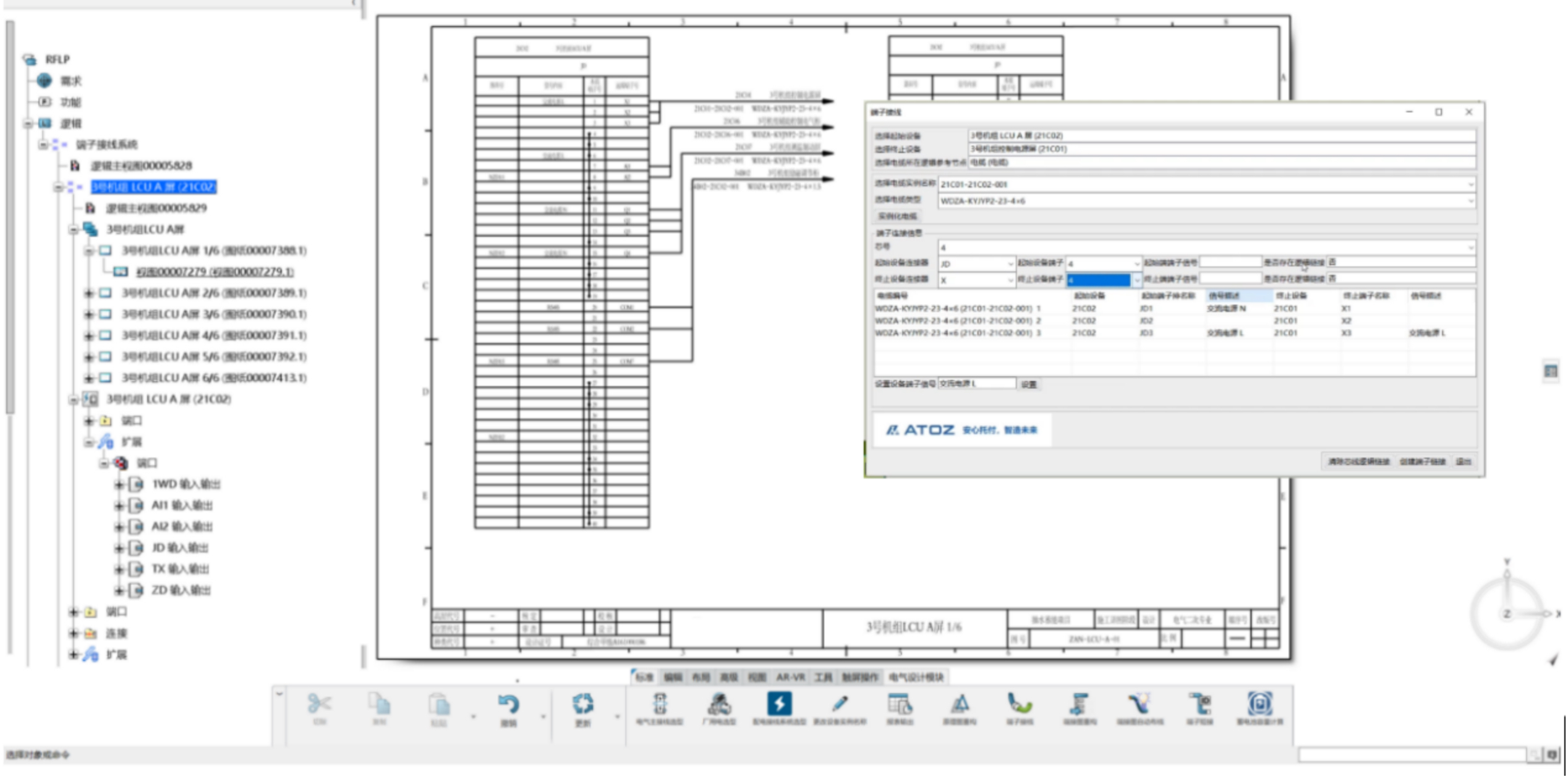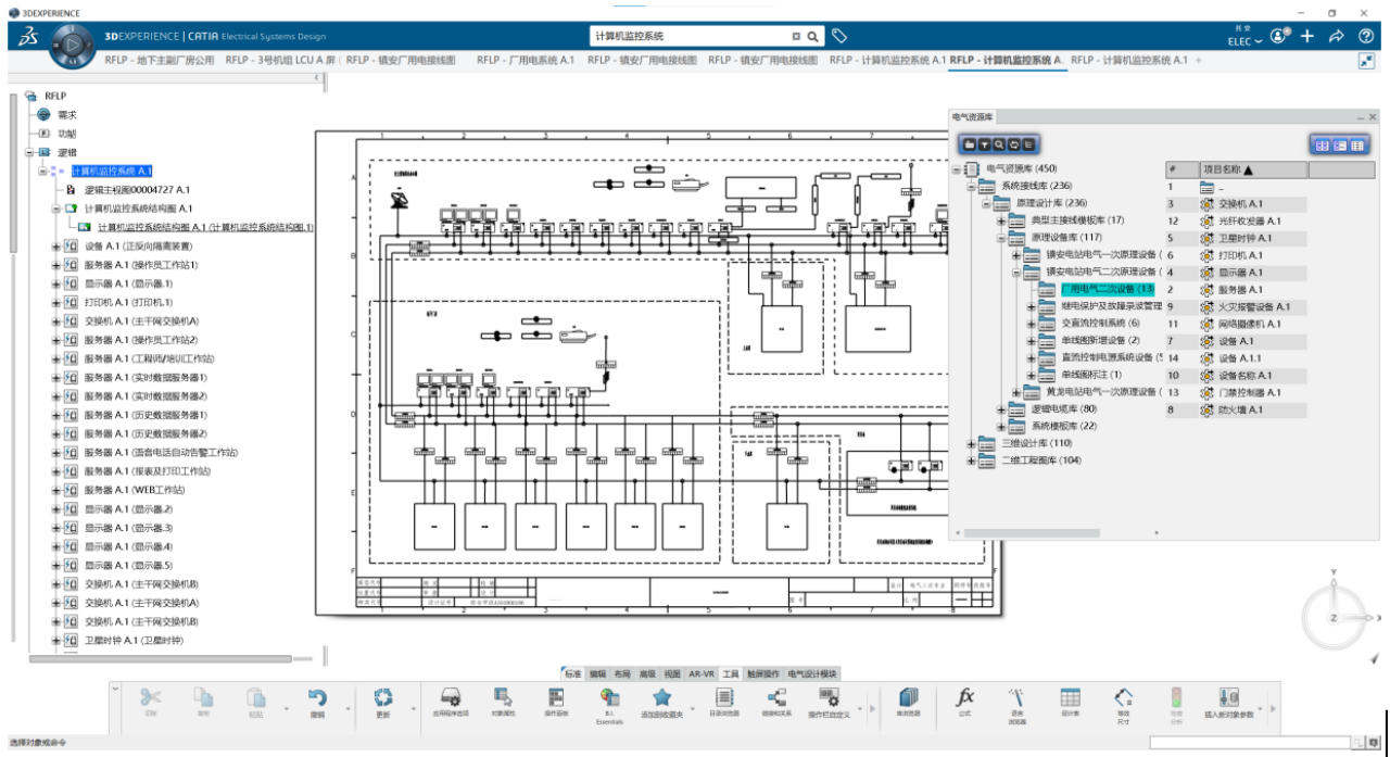 電一專(zhuān)業(yè)設(shè)計(jì)師通過(guò)在電氣資源庫(kù)選擇廠用電接線模板,模塊化成批量調(diào)用高壓廠用電設(shè)備、開(kāi)關(guān)及電纜連接模組,快速給出廠用電高壓端供配電方案;再通過(guò)調(diào)用電纜庫(kù)完成模組間的電纜接線定義,出圖效率得到有效提升。