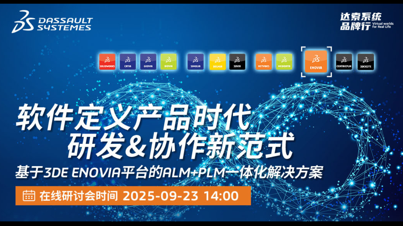 2025-09-23邀請(qǐng)函 | 9月23日達(dá)索系統(tǒng)線上研討會(huì),軟件定義產(chǎn)品時(shí)代研發(fā)&協(xié)作新范式了解更多