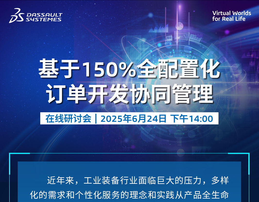 2025-06-12邀請函 | 6月24日達(dá)索系統(tǒng)在線研討會(huì),深度解析150%全配置化訂單開發(fā)邀請函 | 6月24日達(dá)索系統(tǒng)在線研討會(huì),深度解析150%全配置化訂單開發(fā)