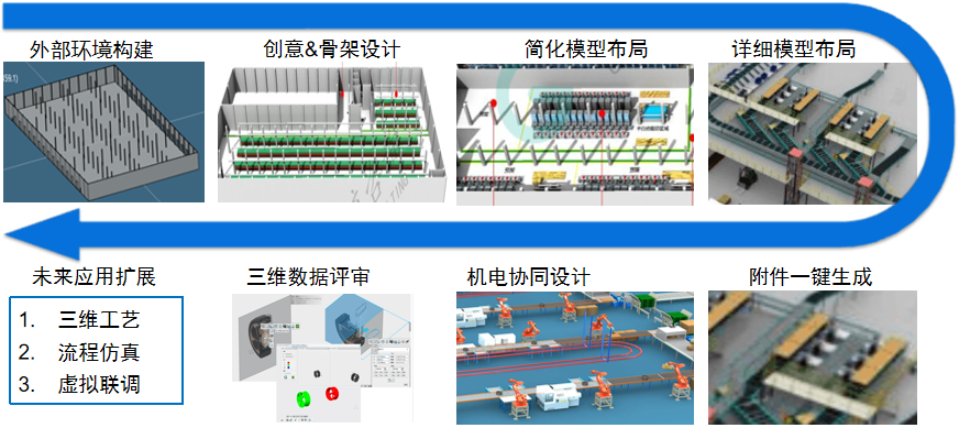 實(shí)現(xiàn)業(yè)務(wù)與數(shù)據(jù)的連續(xù),提效提質(zhì);進(jìn)行多業(yè)務(wù)流程并行設(shè)計(jì),加快設(shè)計(jì)效率;機(jī)型機(jī)電協(xié)同設(shè)計(jì),提效、防錯(cuò)。