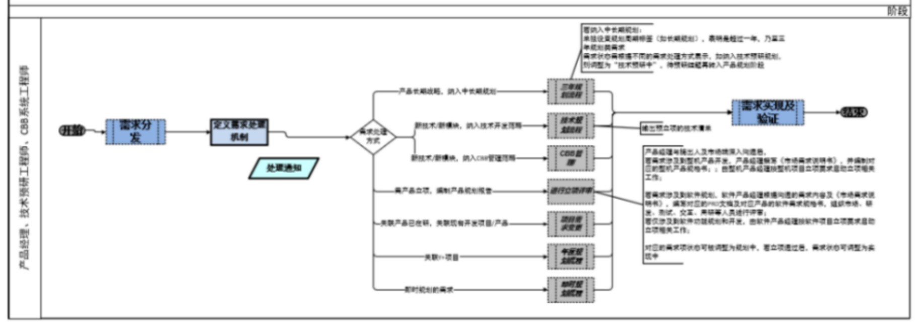 若需求技術(shù)論證當(dāng)前公司技術(shù)不夠成熟或于新技術(shù)或新模塊范疇,則將需求轉(zhuǎn)到研發(fā)中心來判斷是啟動(dòng)技術(shù)預(yù)研或CBB等方式管理。