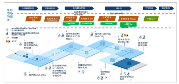 如下圖所示,從產(chǎn)品開發(fā)的策劃、計(jì)劃、開發(fā)、驗(yàn)證各階段業(yè)務(wù)過程中,通過需求的逐層分解的業(yè)務(wù)邏輯來最終交付更加符合原始需求的產(chǎn)品,助力持續(xù)推出高質(zhì)量和高滿意度的產(chǎn)品。
