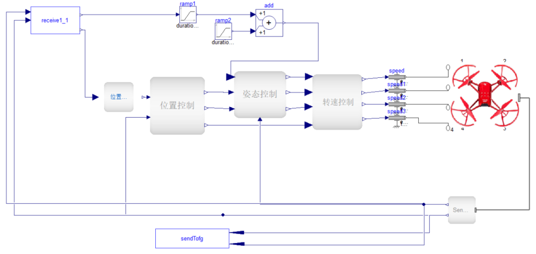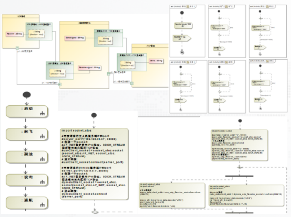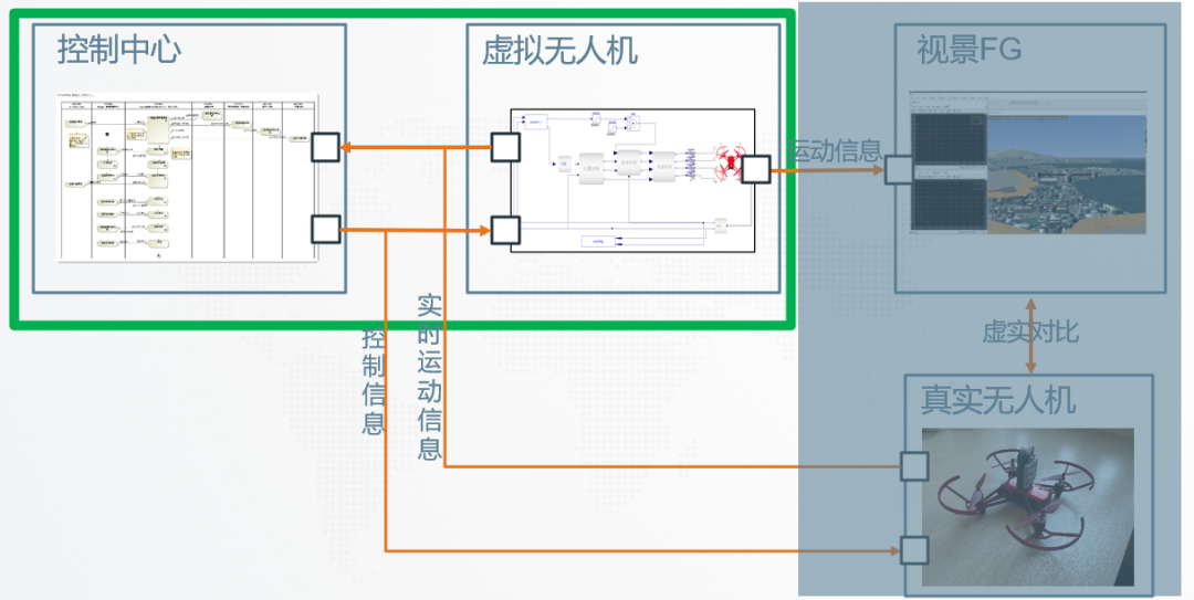某裝備研究院無人機(jī)戰(zhàn)場偵察聯(lián)合仿真:模擬無人機(jī)從戰(zhàn)備起飛、發(fā)現(xiàn)目標(biāo)、執(zhí)行攻擊到安全返航的偵察攻擊過程,為了確保驗證的有效性和準(zhǔn)確性,虛擬無人機(jī)與真實無人機(jī)同時執(zhí)行任務(wù),虛實結(jié)合對比,不斷提高虛擬無人機(jī)的仿真精度,在達(dá)到一定的精度后,可以利用虛擬無人機(jī)單獨開展仿真驗證,進(jìn)而形成數(shù)字孿生體,利用虛擬驗證進(jìn)行系統(tǒng)行為預(yù)測和優(yōu)化,減少物理樣機(jī)試驗次數(shù)或取而代之(降低成本),本次探索僅進(jìn)行控制中心和虛擬無人機(jī)的聯(lián)合仿真。