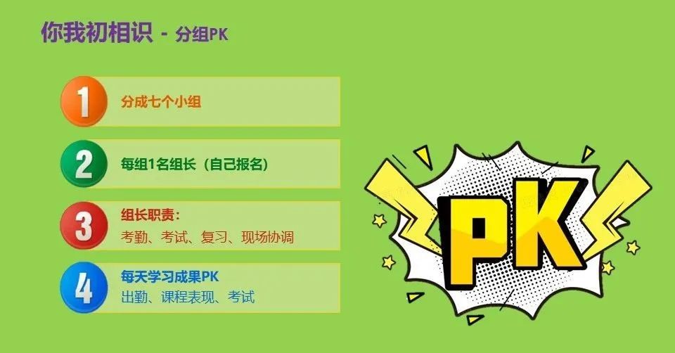 為了讓大家更好地適應(yīng)從校園到職場(chǎng)的轉(zhuǎn)變,我們?cè)O(shè)立了七個(gè)小組,由應(yīng)屆生們自己選出的組長(zhǎng),將帶領(lǐng)大家更快地適應(yīng)環(huán)境,同時(shí)也能帶領(lǐng)大家更出色地完成培訓(xùn)任務(wù),增加了趣味性的同時(shí)希望應(yīng)屆生們能在輕松的氛圍中開啟新的生活。