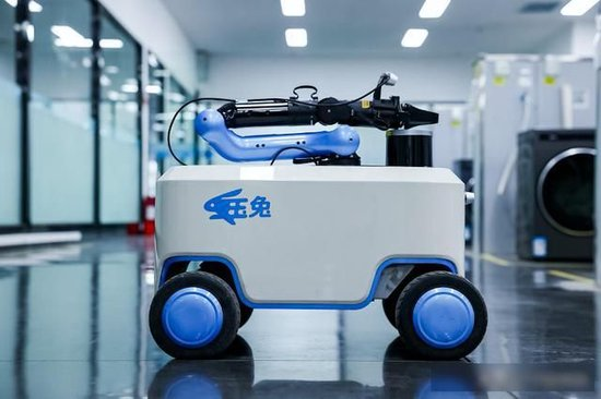 “玉兔”AI 巡檢機(jī)器人在可靠性實(shí)驗(yàn)室負(fù)責(zé)洗衣機(jī)的震動(dòng)、噪聲、面板狀態(tài)等巡檢任務(wù)。過去這些巡檢需要人工兩班輪班,存在漏檢誤檢問題。玉兔接入工廠大腦后,不僅能自動(dòng)識(shí)別洗衣機(jī)的高度/面板類型,還能進(jìn)行拍照/錄音/聲源定位等“看+聽”多模式感知,巡檢頻率提升,檢測(cè)誤差率下降。