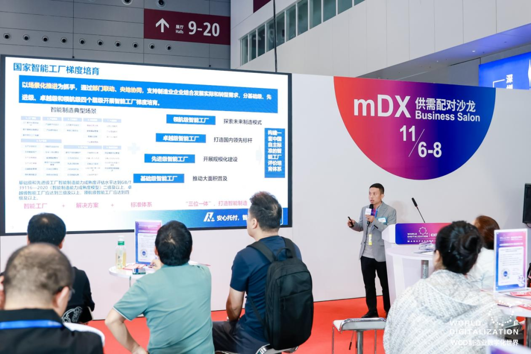 活動期間,安托業(yè)務(wù)咨詢顧問張坤在兩場mDX供需配對沙龍上為觀眾帶來了聚焦智能工廠梯度培育的場景化轉(zhuǎn)型方案介紹。針對需求方普遍面臨的痛點(diǎn),通過數(shù)字化設(shè)計(jì)與交付平臺及技術(shù),能夠顯著縮短工廠建設(shè)或改造周期;利用數(shù)字孿生工廠構(gòu)建,實(shí)現(xiàn)數(shù)據(jù)管理與模型映射交互,提升管控效率;借助產(chǎn)品數(shù)字化設(shè)計(jì)的工具、知識庫與多技術(shù)集成,以及人工智能大模型創(chuàng)新,助力企業(yè)縮短產(chǎn)品研發(fā)上市周期、降低成本。