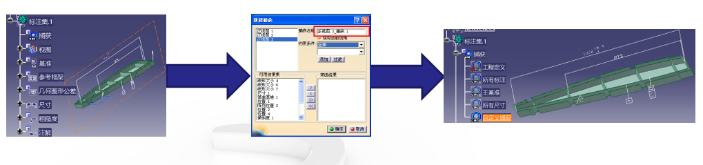 ①默認(rèn)捕獲創(chuàng)建:默認(rèn)捕獲創(chuàng)建命令的作用是創(chuàng)建四個(gè)指定的捕獲(工程定義、所有標(biāo)注、主基準(zhǔn)、所有尺寸)。并可以在修改標(biāo)注后進(jìn)行捕獲的更新。